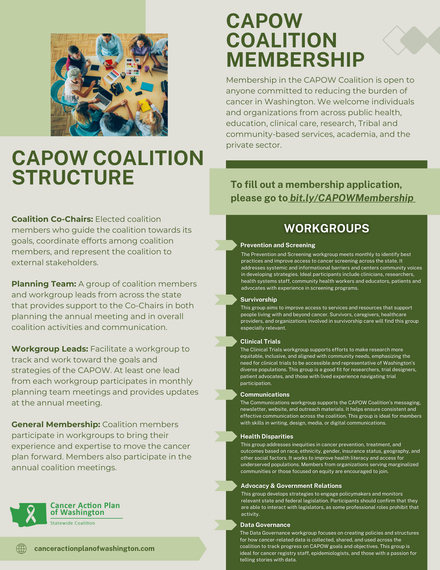 Fill out the Cancer Action Plan of Washington Coalition Membership Form HERE
